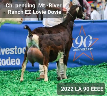 LA 2022 EEEE 91. LA2023 EEEE 92! Champion after 3 shows . 13x CH , 4x RGCH, 20 X BOB, 8x Best udder, 5 X BEST IN SHOW. 2023 Reserve All American 4 year old doe.